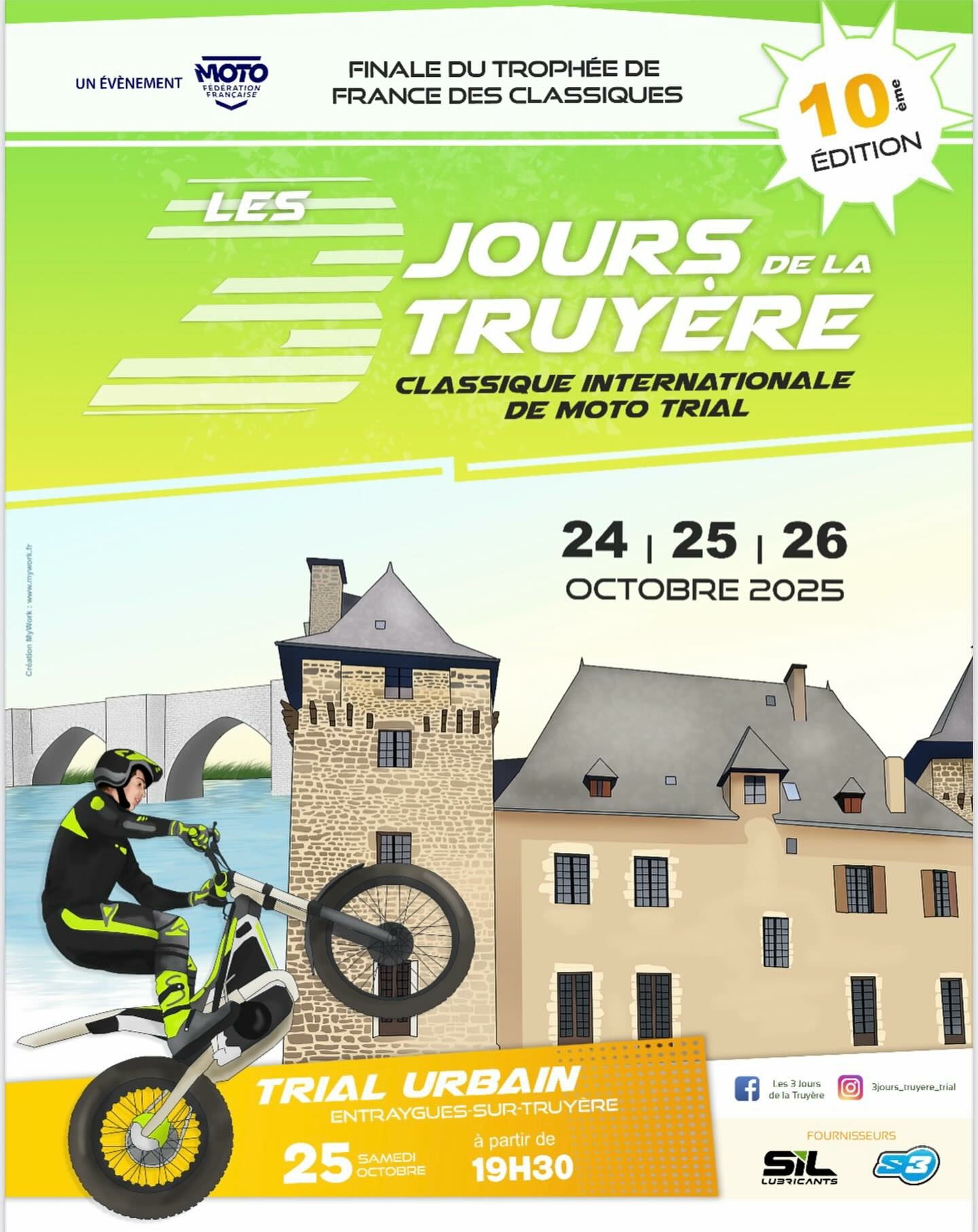 Les 3 Jours de la Truyère, compétition Internationale de moto trial se déroulera à Entraygues/Truyère dans le nord-Aveyron les 24, 25, et 26 octobre 2025.