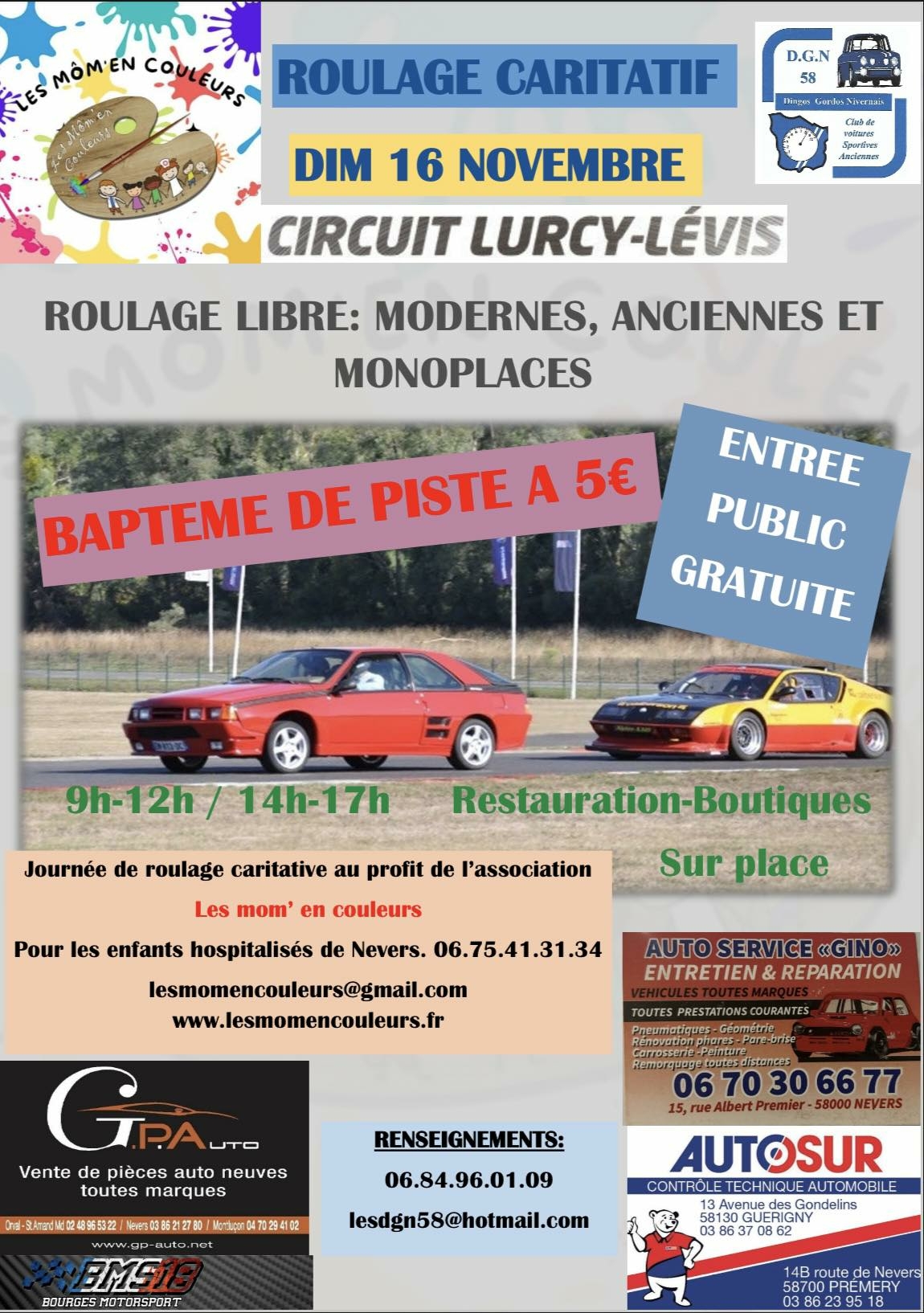 Roulage et Baptêmes Auto sur le circuit de Lurcy-Lévis entre Moulins et Bourges.