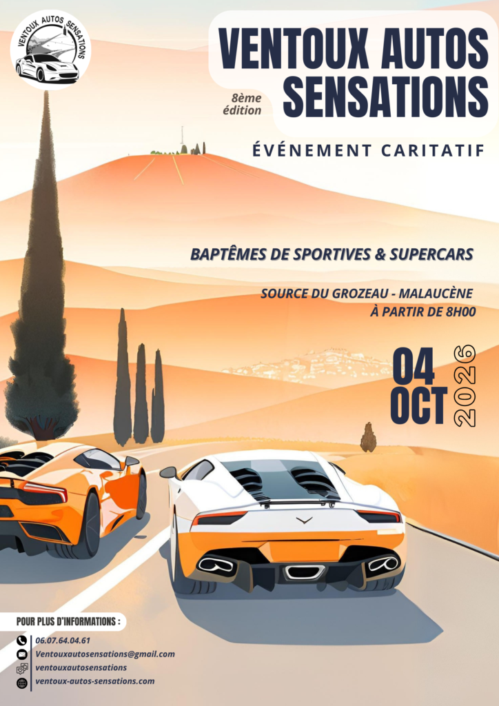 Cette journée caritative s’adresse aux propriétaires de voitures de prestige et/ou de sport, désireux de faire partager leur passion pour les belles mécaniques dans le cadre somptueux du Mont Ventoux du côté de Malaucène et sur les 8 premiers kilomètres de la D974.