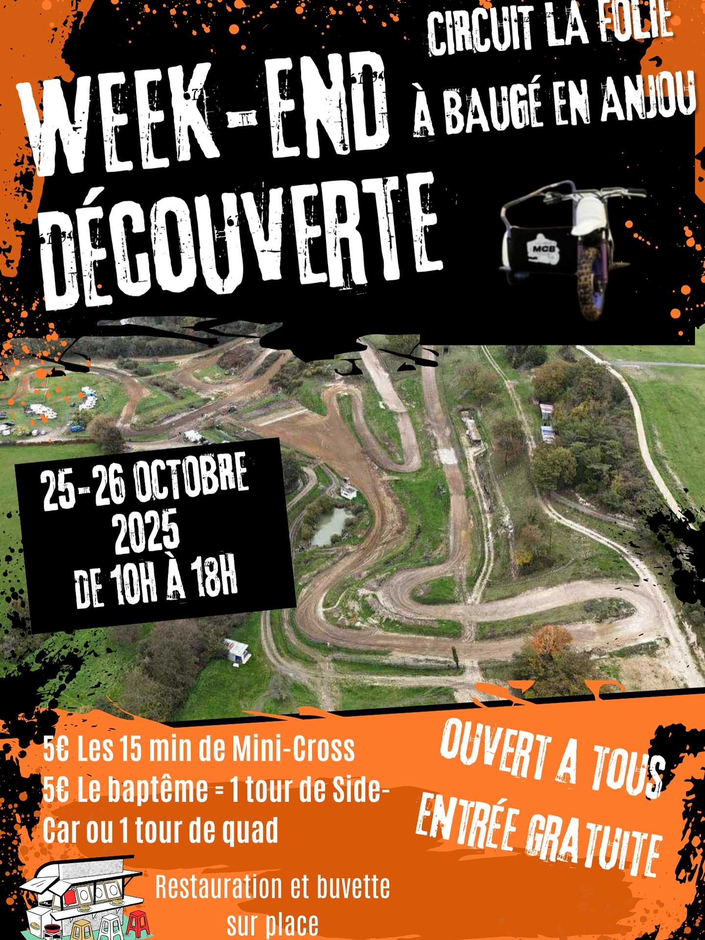 Week-end découverte les 25 et 26 octobre pour la mini cross ou bien un baptême en side-car ou quad !