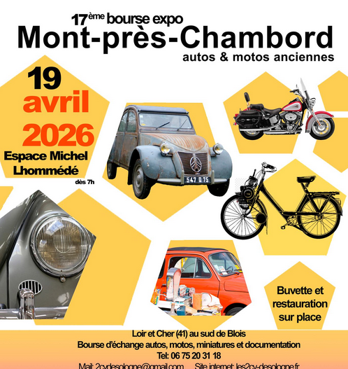 17ème Exposition – Bourse Autos Motos à Mont-près-Chambord au sud-est de Blois.
