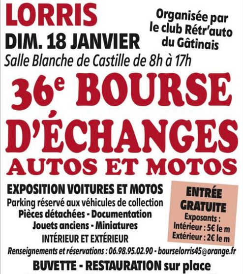 36ème Bourse d’échanges Véhicules Anciens à Lorris à l’est d’Orléans.