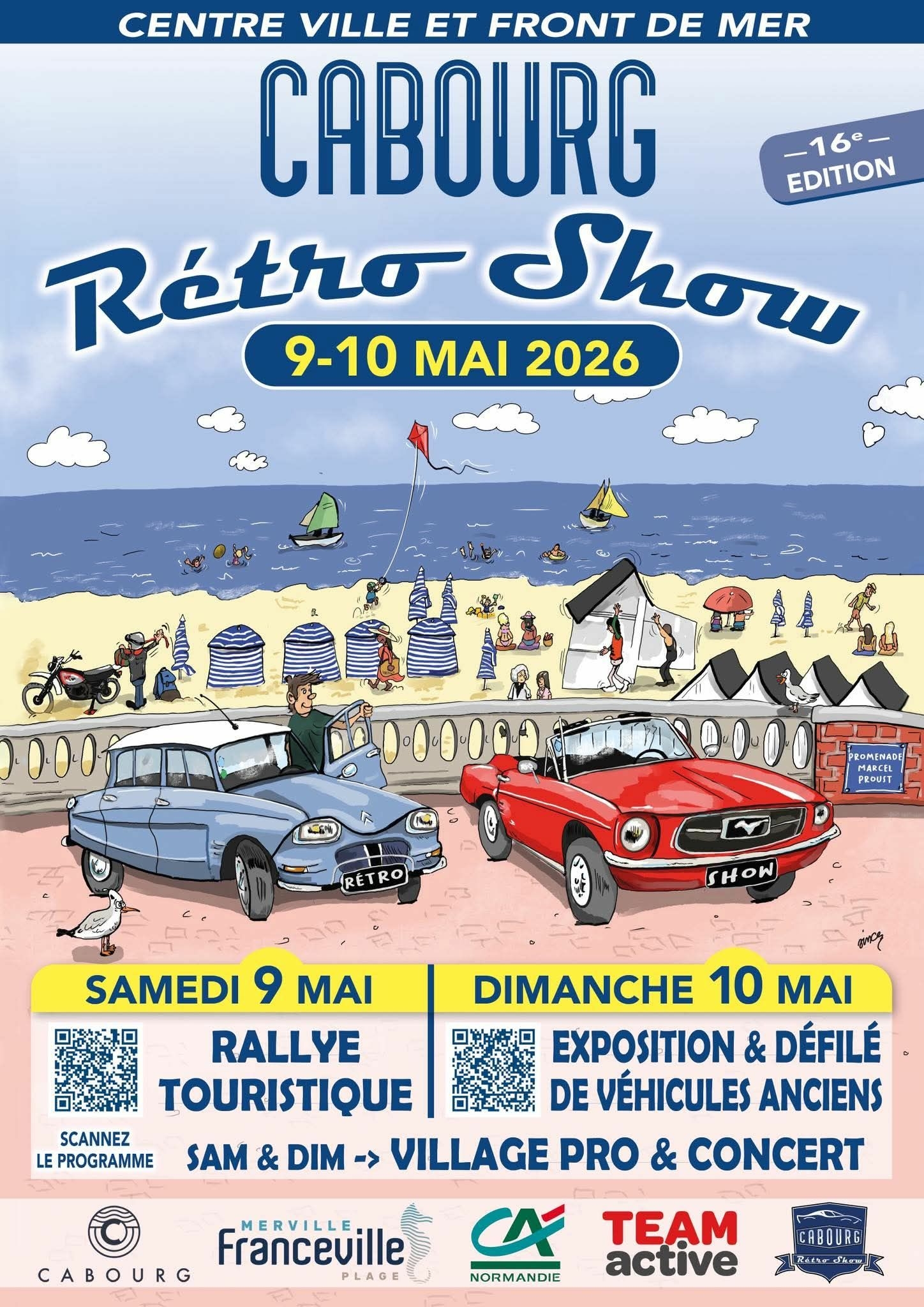 Nous sommes très heureux de vous annoncer que la 16ème édition du Cabourg Retro Show aura lieu le Samedi 9 et Dimanche 10 Mai 2026 dans le centre ville et sur le bord de mer de Cabourg !