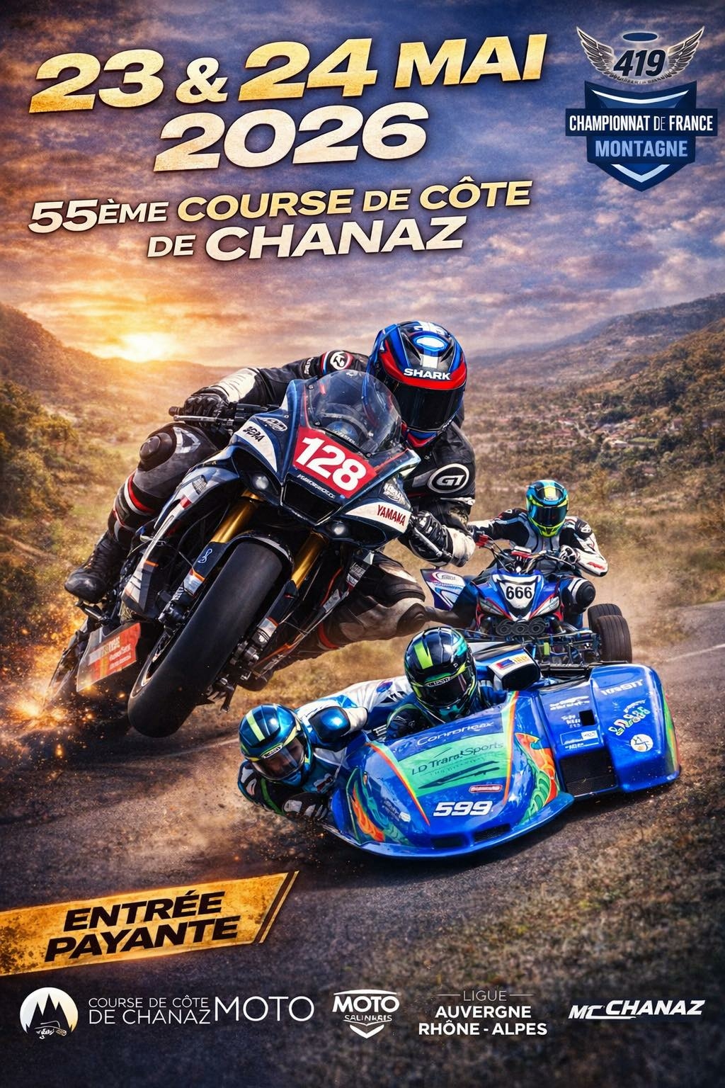 + Championnat de France de Course de Côte de Motos Classiques et Historiques.