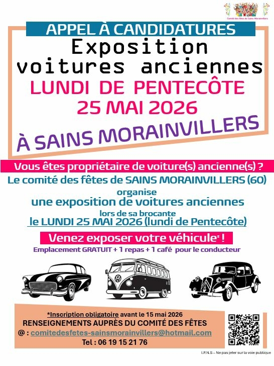 RV le lundi de Pentecôte – 25 Mai 2026 sur la Place de l’Eglise à Sains-Morainvillers.