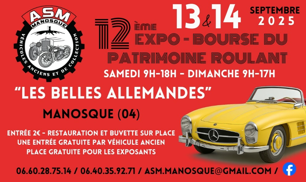 12ème Exposition-Bourse d’échanges Patrimoine roulant à Manosque.