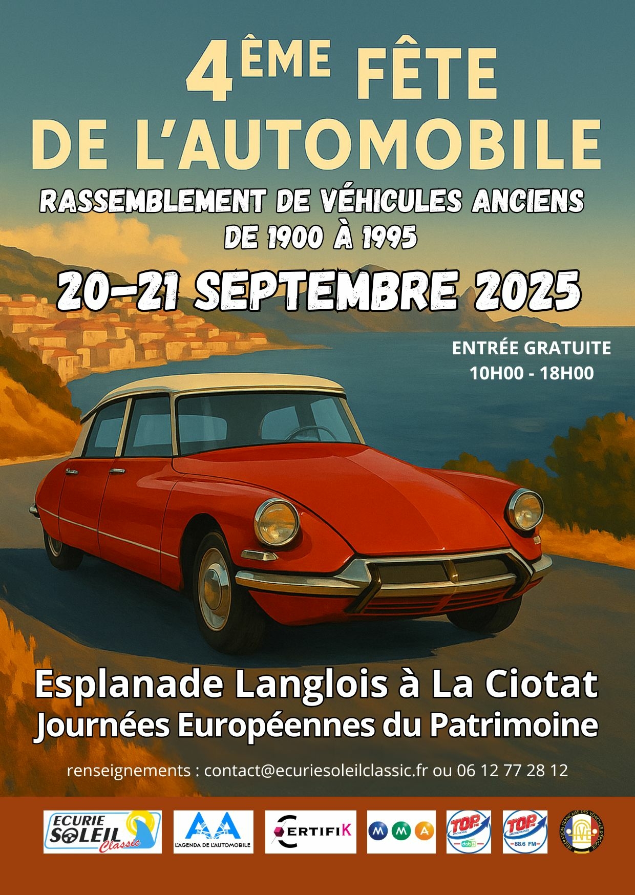 L’Ecurie Soleil Classic vous donne rendez vous à La Ciotat, sur l’Esplanade Langlois en bord de mer, pour la 4ème édition de la Fête de l’Automobile.