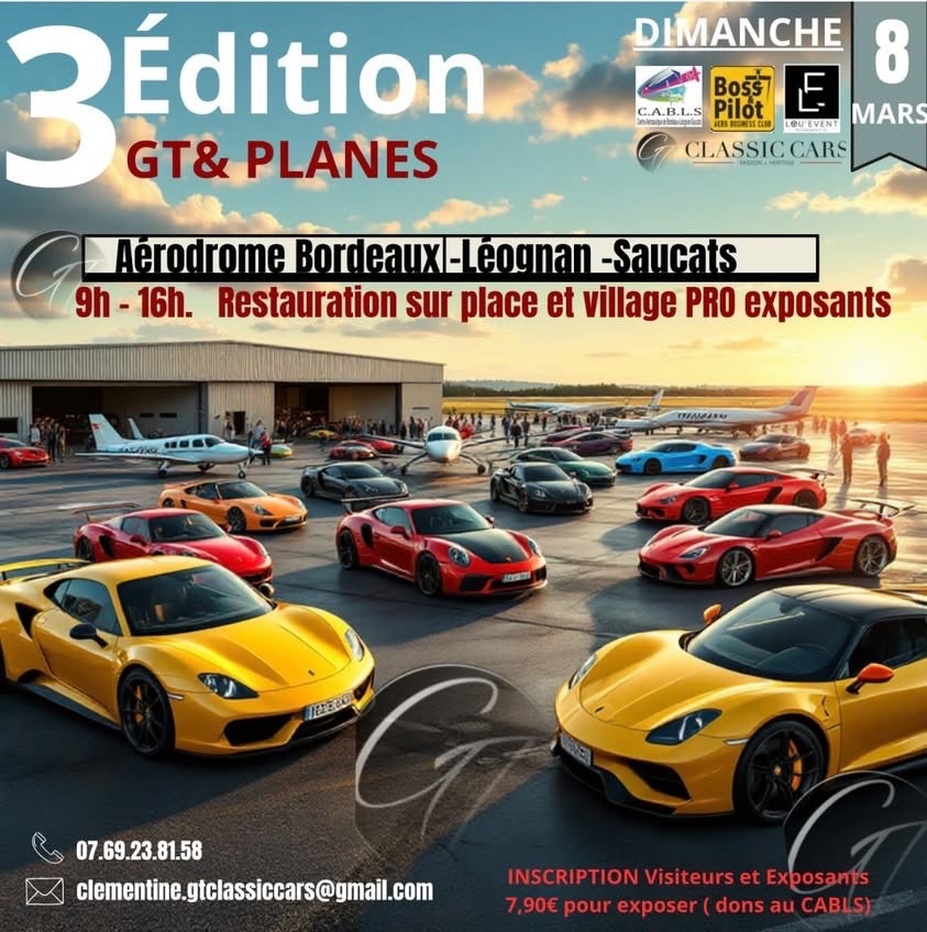 Auto – 3eme GT & Planes à l’Aérodrome Bordeaux–Léognan-Saucats au sud de Bordeaux.
