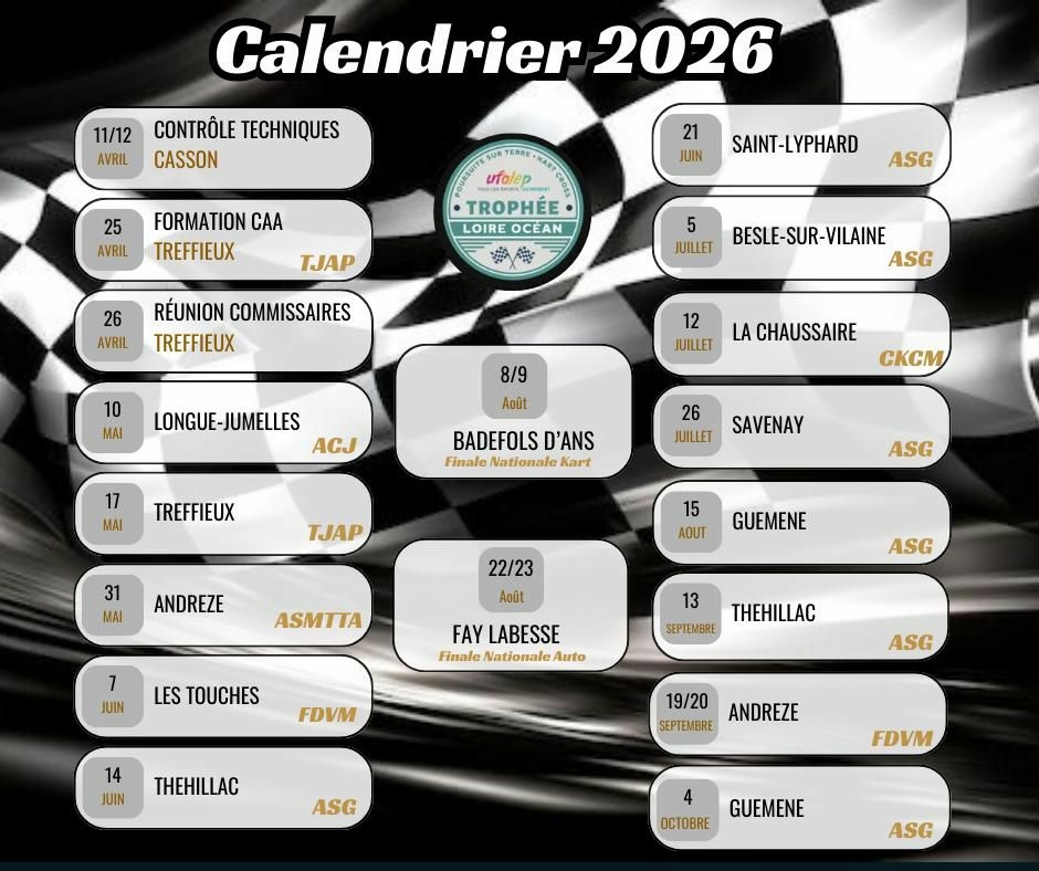 Catégories 1 à 14 de Poursuite sur Terre et Kart Cross.