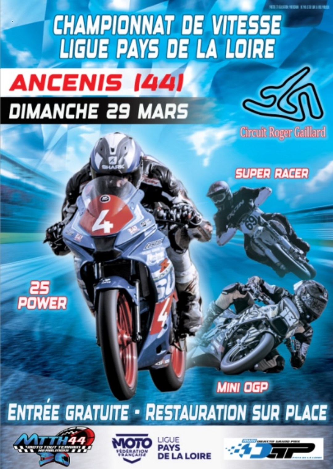 + 15 et 25 Power (pit bike, mob , scooter , 125 4t ,électrique …. ne dépassant la puissance de 25cv) + Super Racer (Supermotard sur bitume)