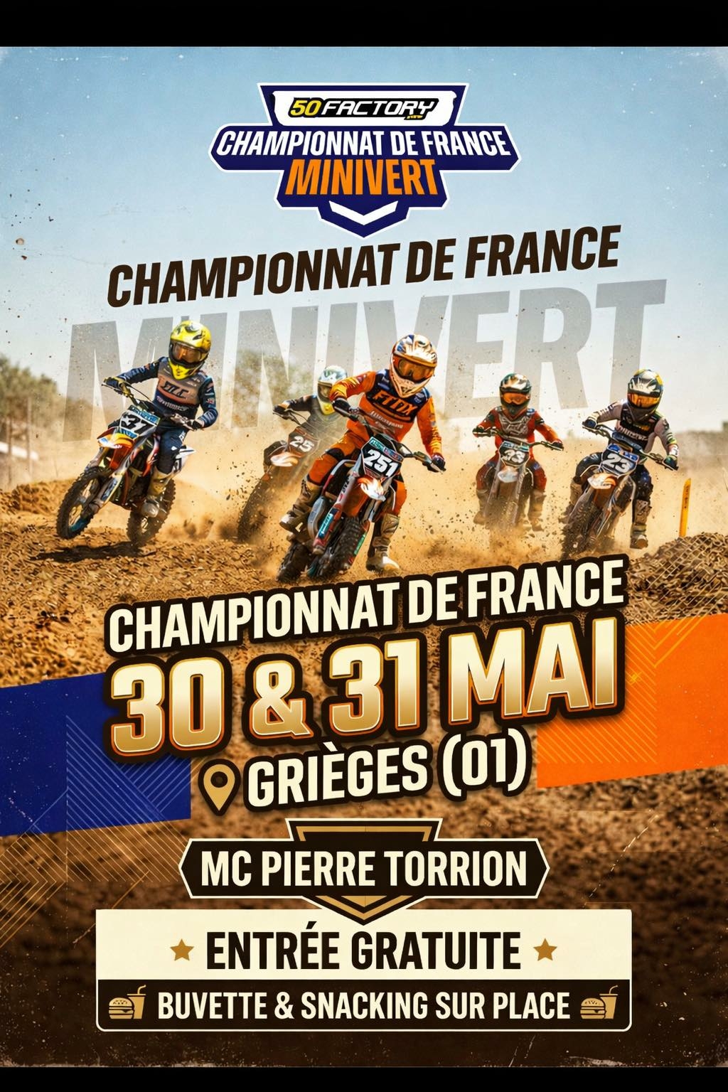 Le Championnat de France Minivert fait la part belle aux jeunes pilotes entre 6 et 13 ans, sur des 50cc, 65cc et 85cc, futurs grands champions de motocross.