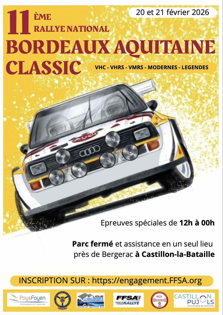 Auto – 11eme Rallye Bordeaux Aquitaine Classic VHC + VHRS + VMRS + Modernes.
