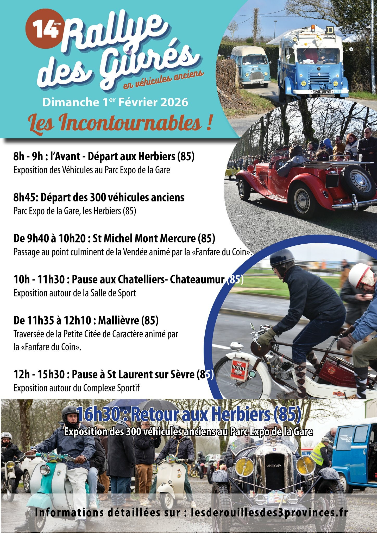 Véhicules Anciens – 14eme Rallye des Givrés au départ des Herbiers entre La Roche-sur-Yon et Cholet.
