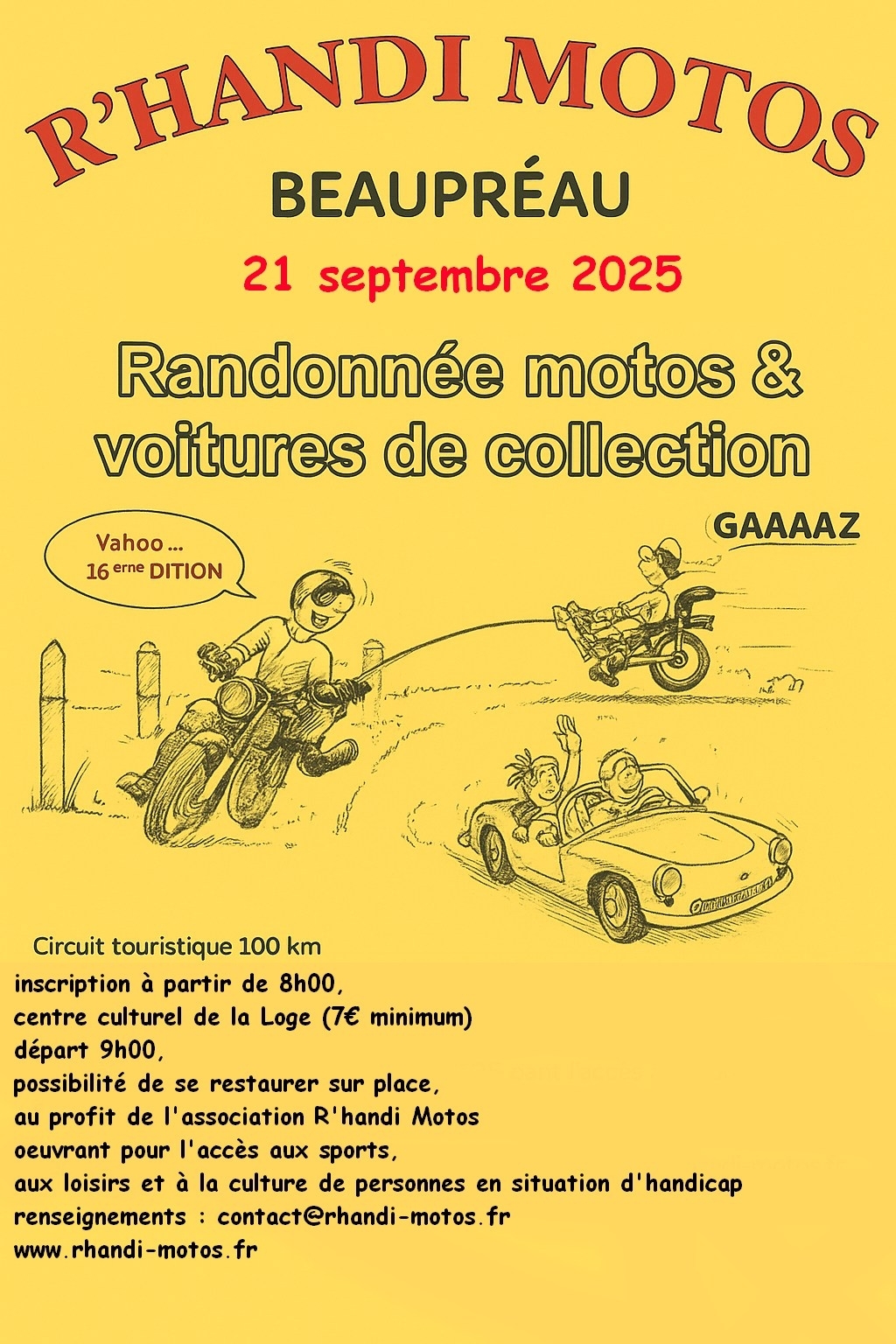 16eme Randonnée Auto Moto caritative au départ de Beaupréau au nord de Cholet.