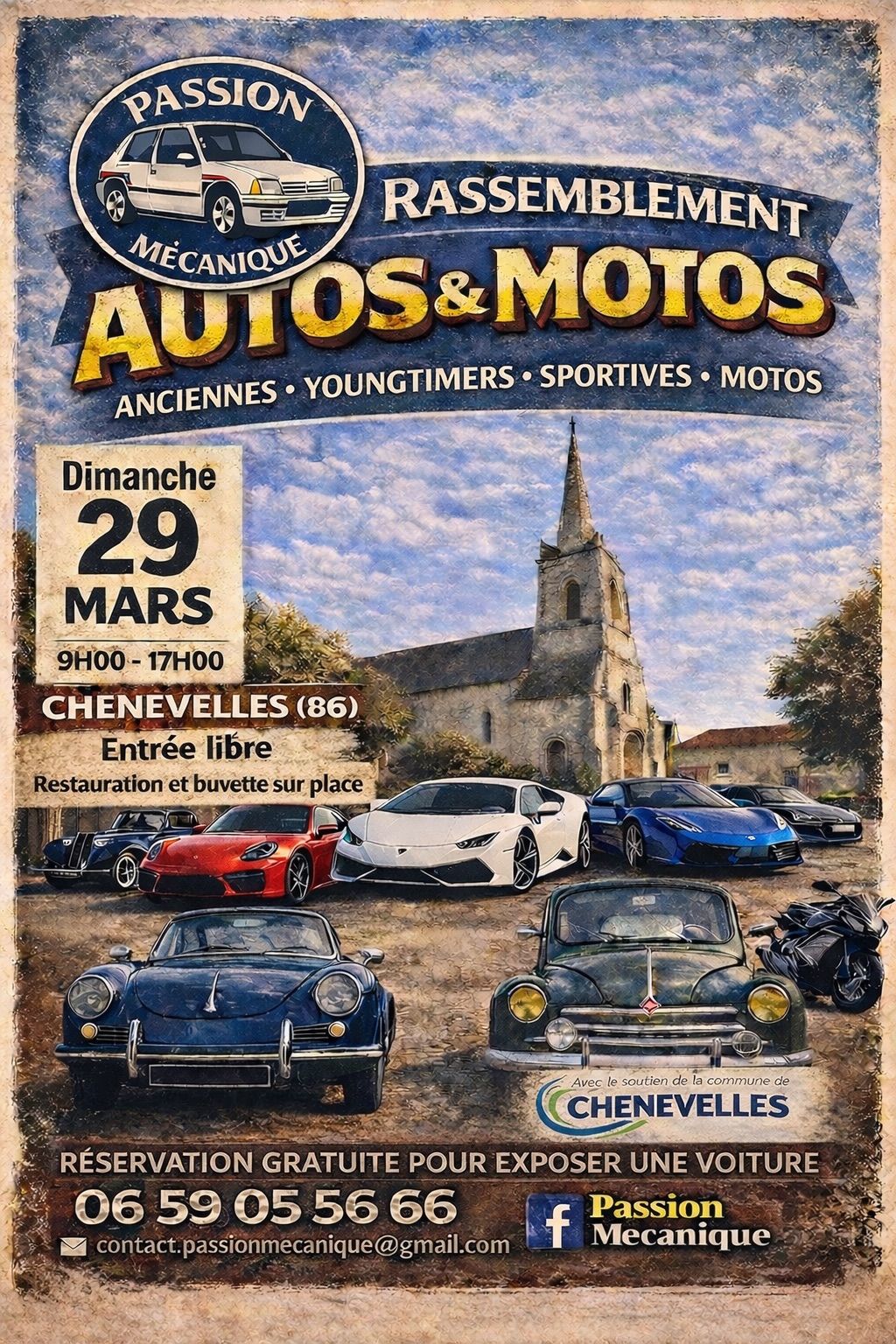 1er Rassemblement Auto Moto à Chenevelles au sud-est de Châtellerault.