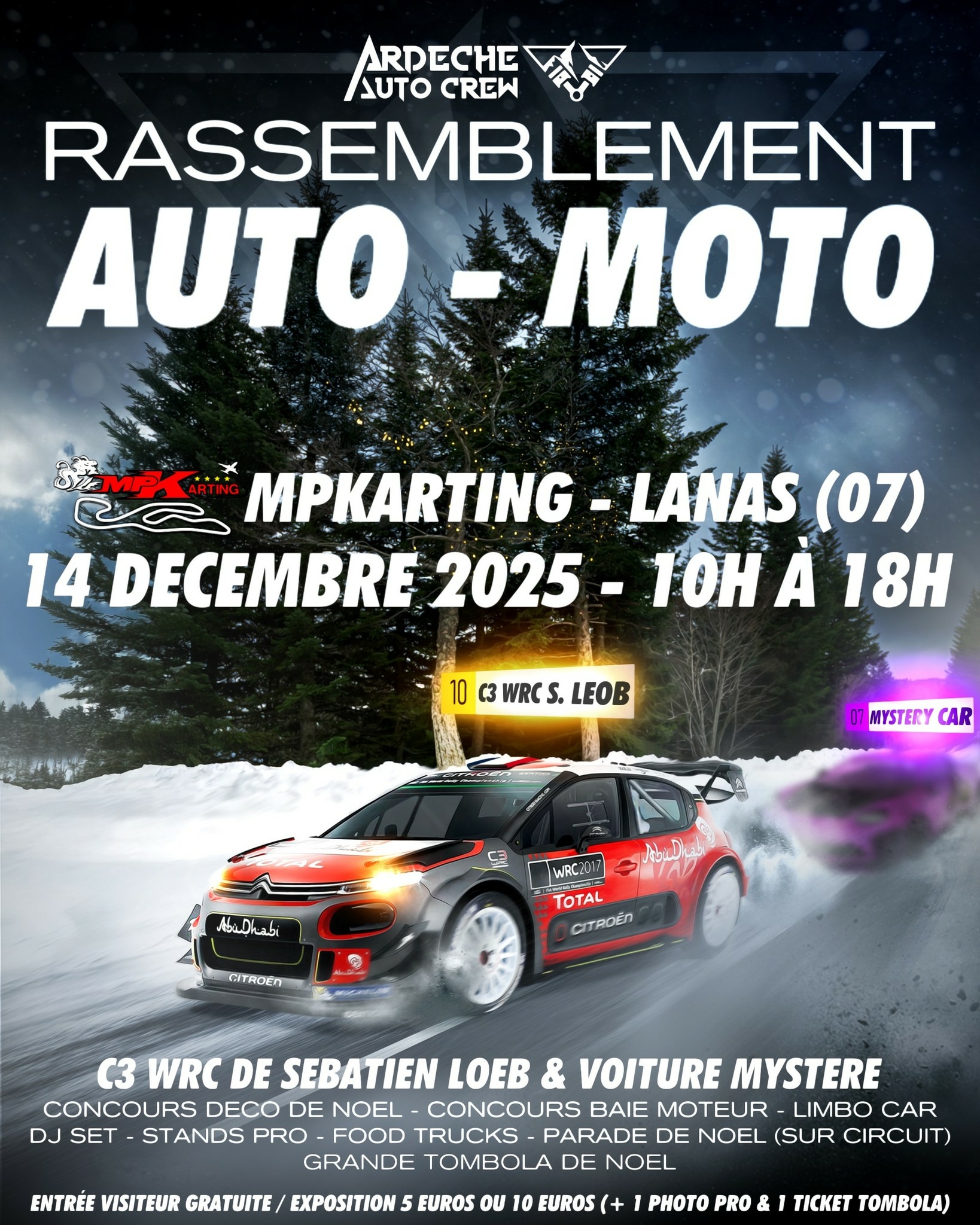 Concours de la meilleure déco de Noël – Concours de la plus belle baie moteur – Limbo car – Grande tombola.
