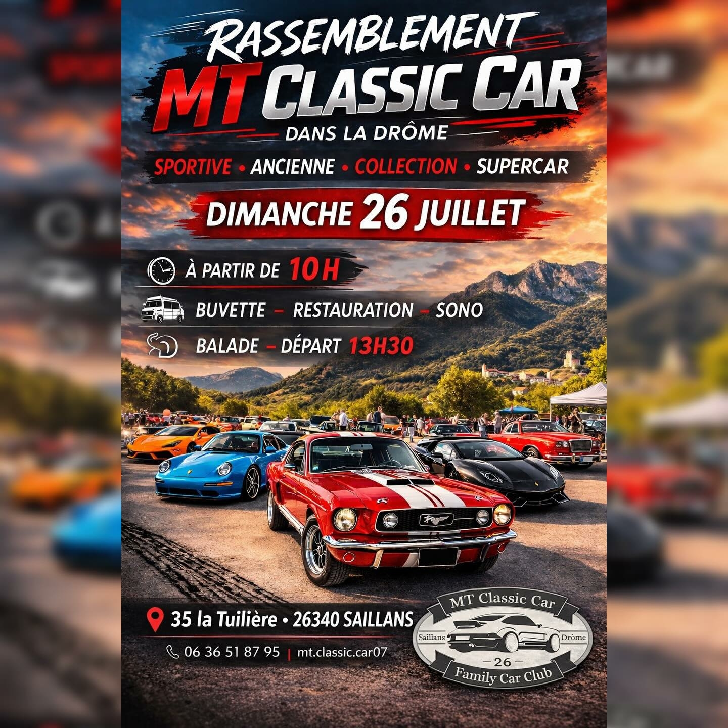 Rassemblement de voitures anciennes, de collection, de prestige ou d’exception à partir de 10h.