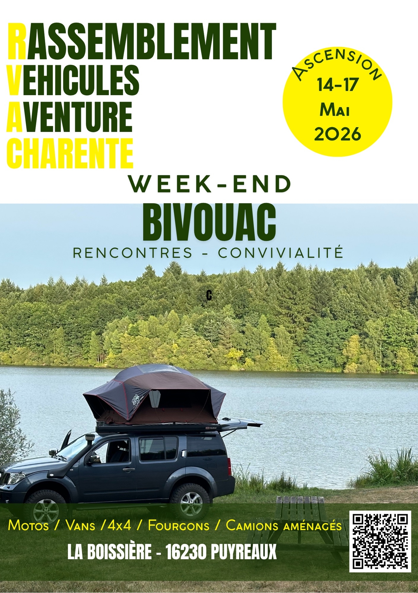 Rassemblement du 14 au 17 mai 2026 pour tout les passionnés de véhicules d’aventure en Charente, sur 2, 3, 4 roues et plus (4×4, motos, vans, camions aménagés, fourgons…).
