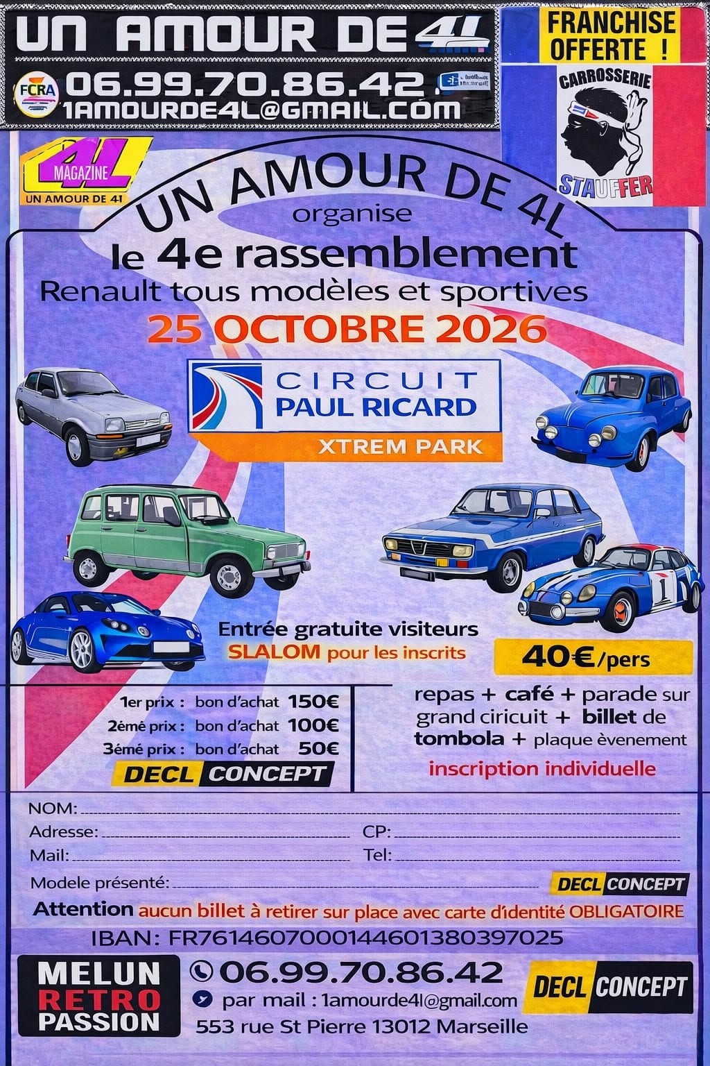 Evènement réservé aux Renault 4l et toutes Renault avant 1995.