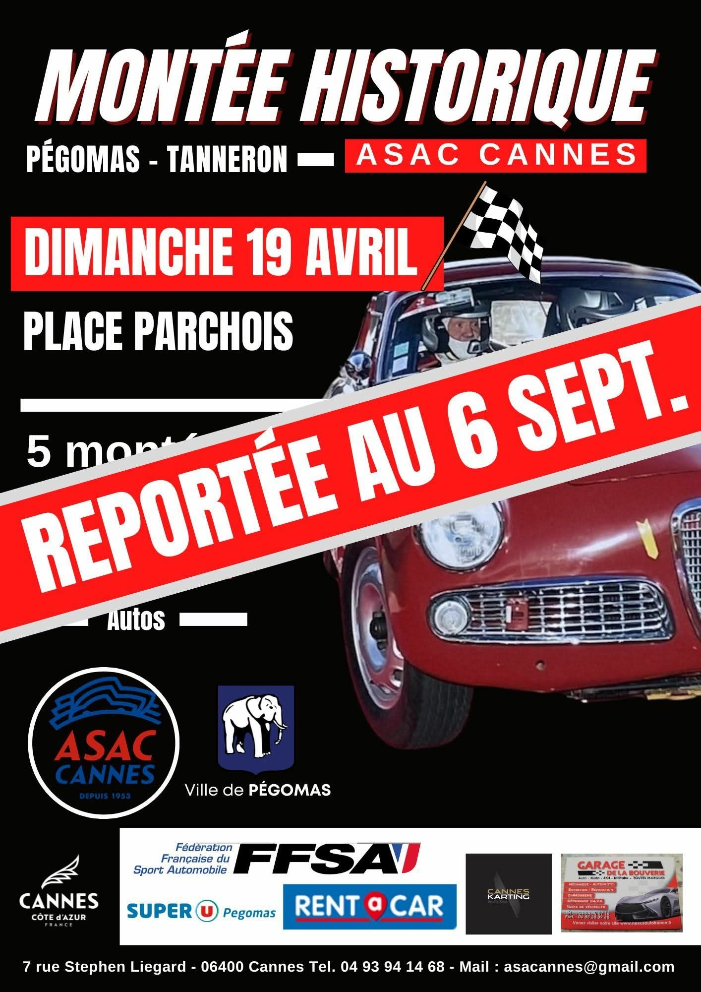 Montée Historique Pégomas Tanneron. Epreuve reportée au 6 Septembre 2026 !