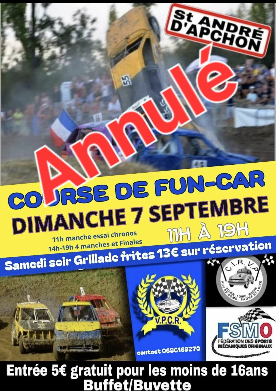 Courses de Stock-Car et Fun Cars à Saint André d’Apchon à l’ouest de Roanne. Epreuve annulée en 2025 !!