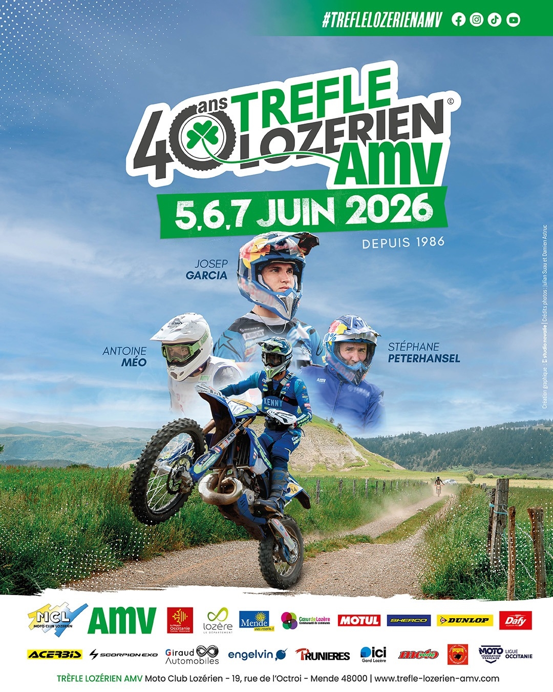 En 1986, le Moto Club Lozérien a imaginé un concept novateur qui a bouleversé le monde de l’enduro, une course sur trois jours, avec trois circuits en forme de boucle autour de Mende, une course qui permettait de réunir pilotes professionnels et pilotes amateurs sur un parcours de 600 km ponctué de spéciales chronométrées, des temps larges en liaison pour laisser loisir aux participant de découvrir et d’apprécier les paysages lozériens, loin des contraintes et du stress des championnats, donnant naissance au Trèfle lozérien AMV.
