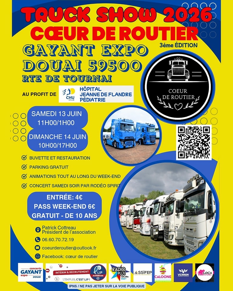 L’association Cœur de Routier organise une troisième édition de son Truck Show nordiste, les 13 et 14 juin 2026 dans la salle Gayant Expo de Douai.