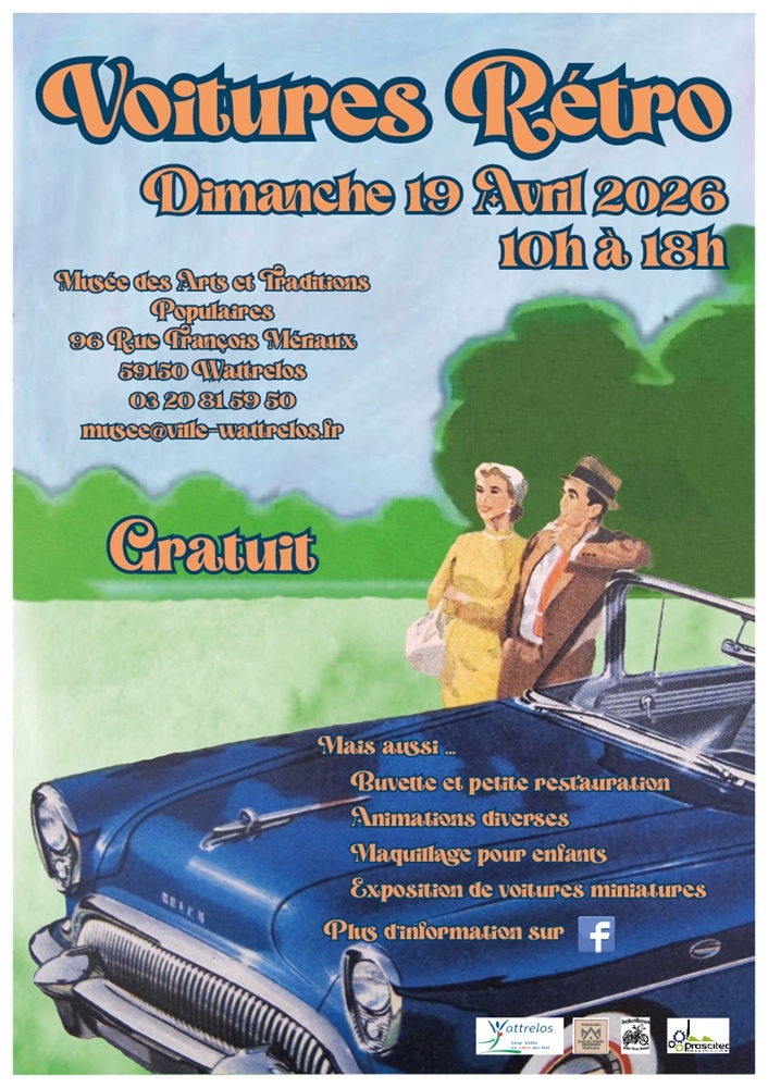Exposition de véhicules anciens au Musée des Arts et Traditions Populaires de Wattrelos, auto, moto, caravane…