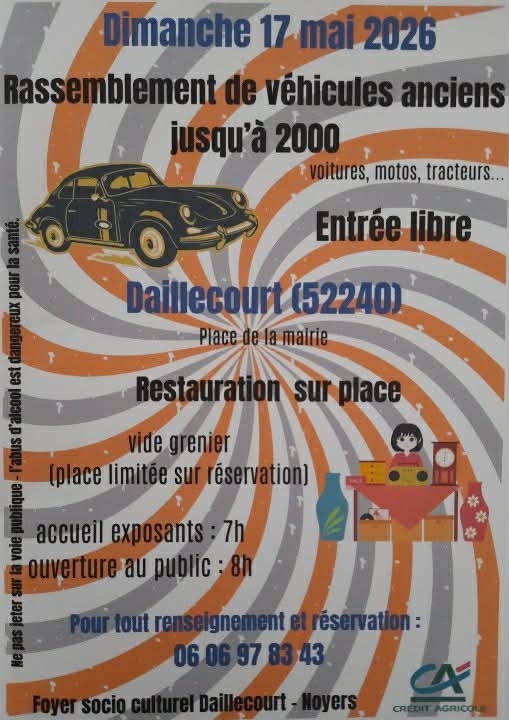 Le Foyer Socio-Culturel de Daillecourt-Noyer organise son Rassemblement de Véhicules Anciens et Youngtimers (Avant 2000) autos, motos, tracteurs, cyclos…