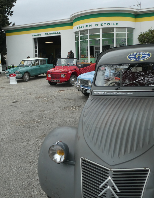 Rassemblement mensuel de Véhicules Anciens à la Station BP d’Étoile-sur-Rhône au sud de Valence.