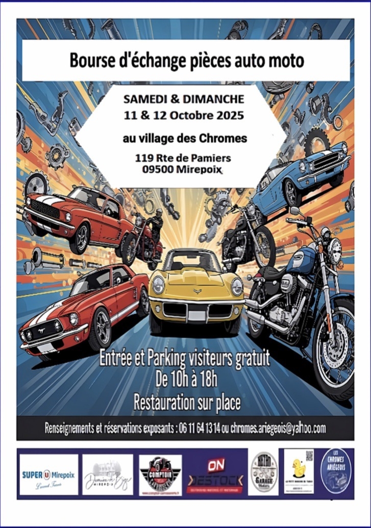 RV les 11 et 12 Octobre 2025 de 10h à 18h au Village des Chromes, 119 route de Pamiers à Mirepoix.