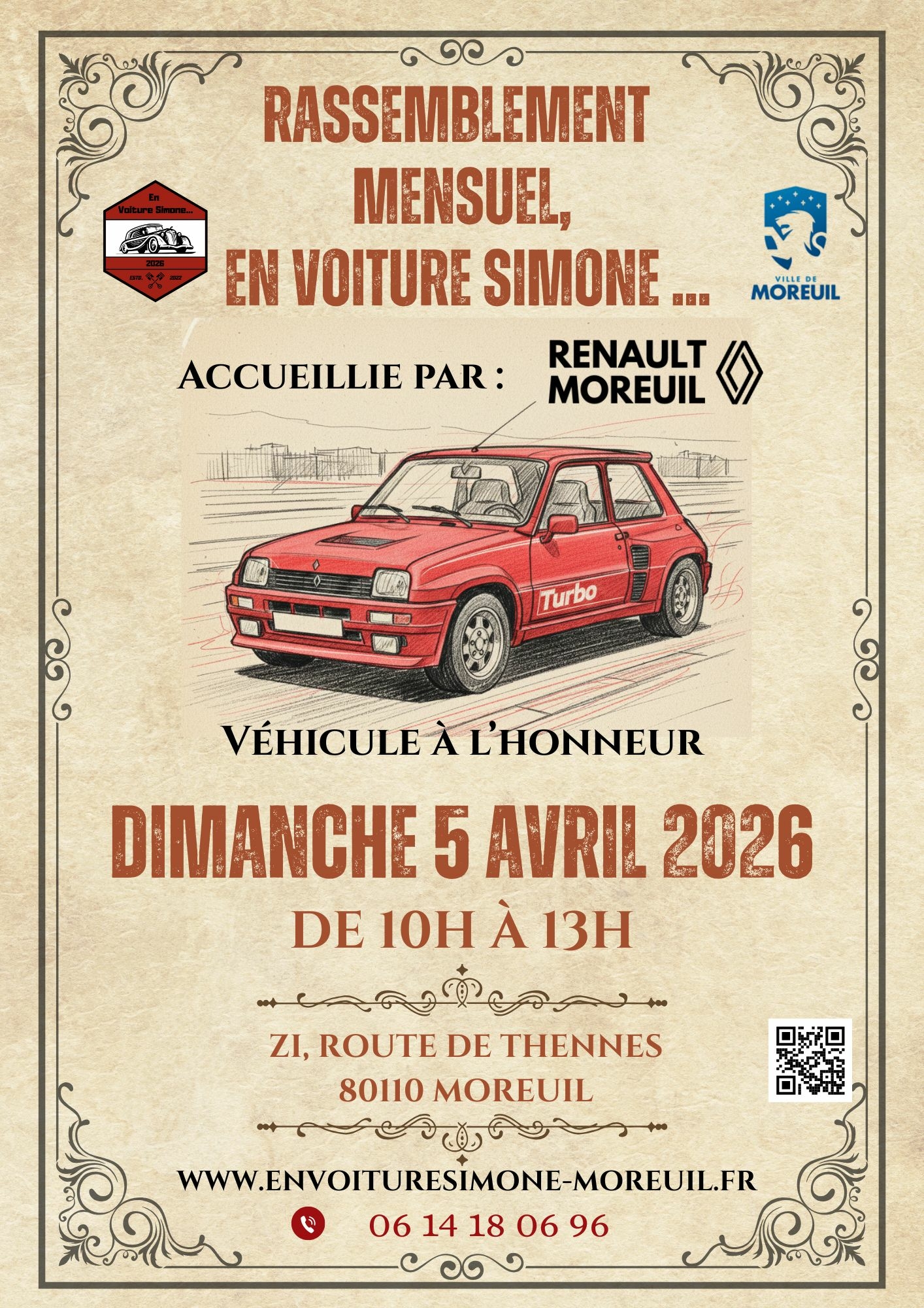Lors de ce rassemblement chez Renault Moreuil, la star sera la mythique R5 Turbo2, mais aussi la toute nouvelle génération de la R5 à essayer absolument !