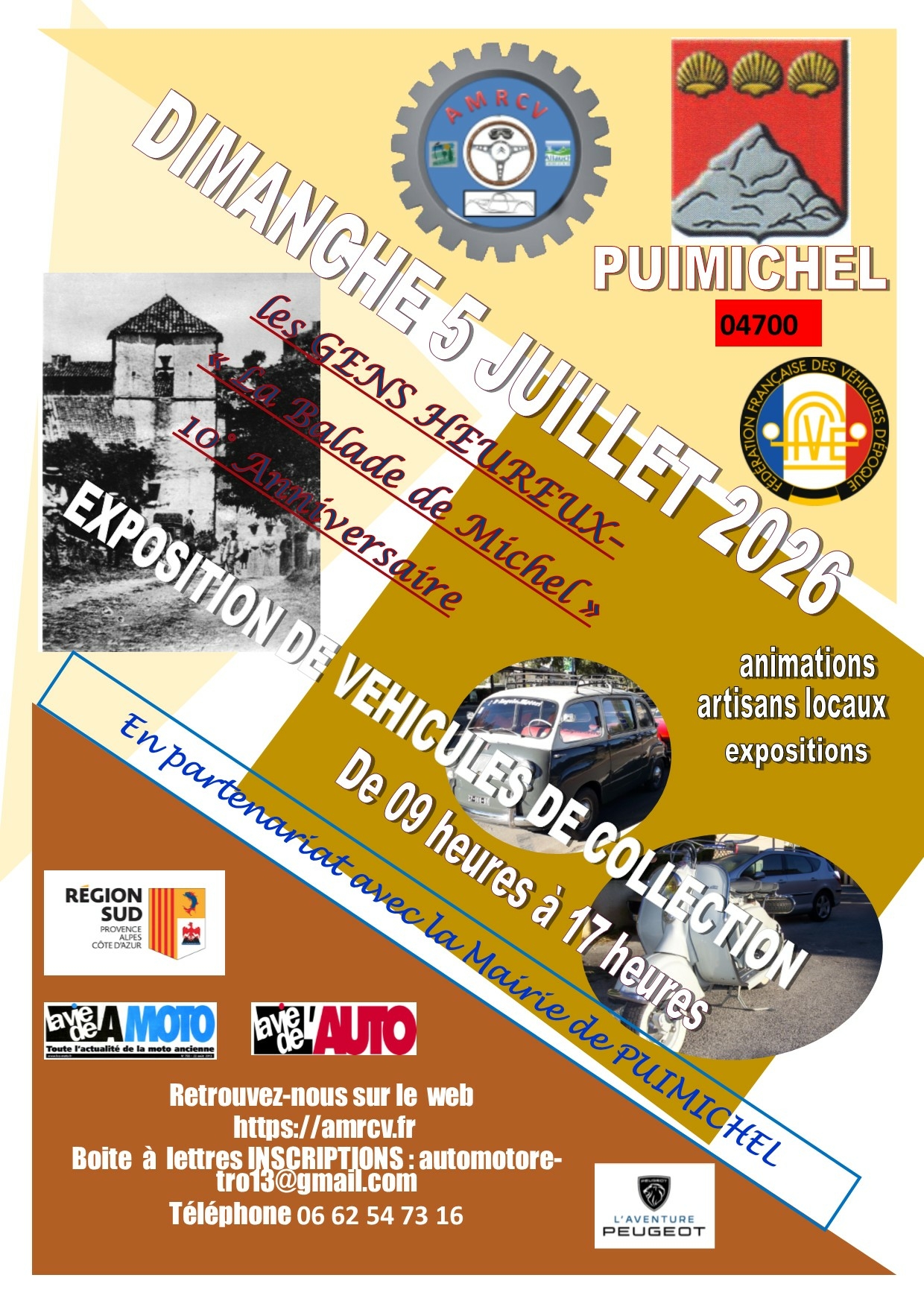 RV dimanche 5 Juillet 2026 de 9h à 17h à Puimichel.