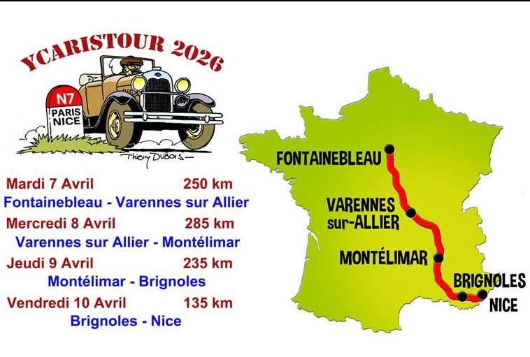 Auto Rétro – Ycaristour 2026 de Paris à Nice par la N7.
